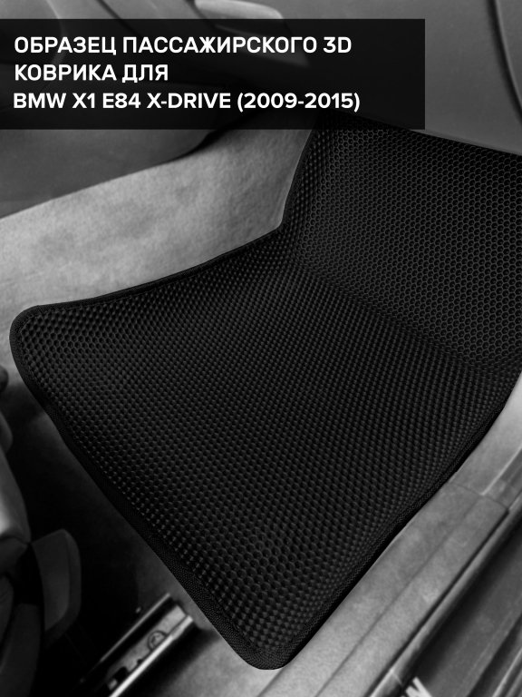 Автомобильные 3д коврики для BMW X1 E84 4WD (2009-2015) в салон авто и багажник сделаны из инновационного полимерного материала EVA, изысканная структура в виде ячеек не дает воде, пыли и снегу разлетаться по салону машины и багажнику. 3д коврики зафиксированы на полу определенными клипсами, соответствующими BMW X1 E84 4WD (2009-2015), и не двигаются в процессе езды.