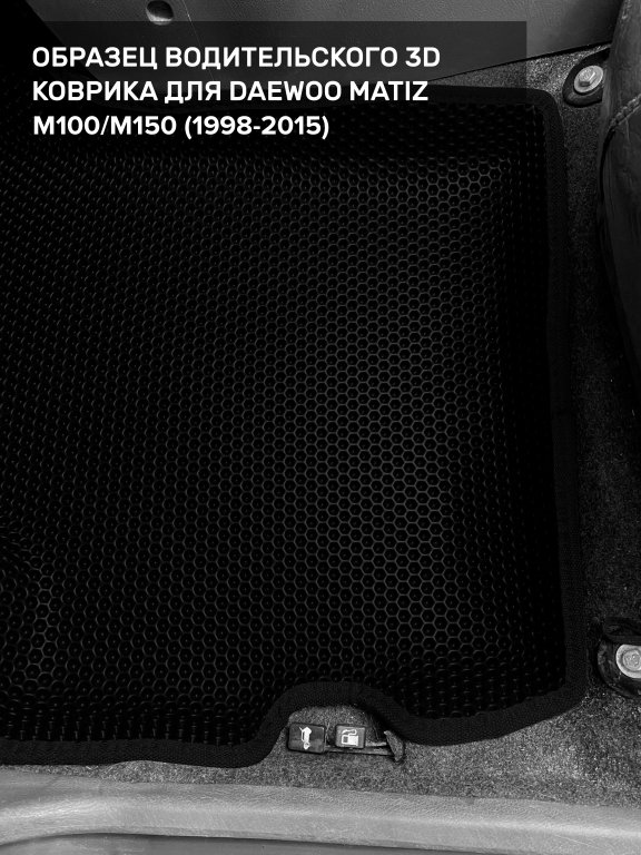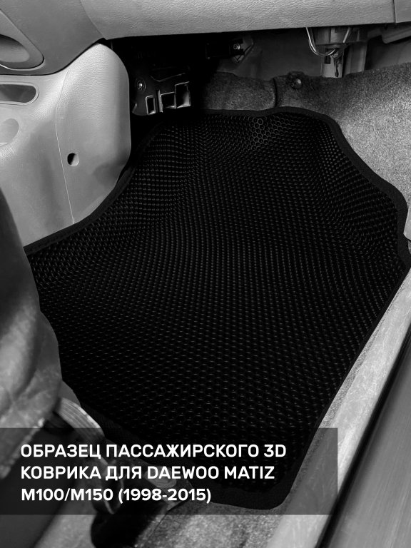 Автомобильные 3д коврики для Daewoo Matiz M100/M150 (1998-2015) в салон авто и багажник сделаны из инновационного полимерного материала EVA, изысканная структура в виде ячеек не дает воде, пыли и снегу разлетаться по салону машины и багажнику. 3д коврики зафиксированы на полу определенными клипсами, соответствующими Daewoo Matiz M100/M150 (1998-2015), и не двигаются в процессе езды.