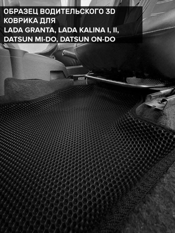 Автомобильные 3д коврики для Datsun on-DO (2014-2020) в салон авто и багажник сделаны из инновационного полимерного материала EVA, изысканная структура в виде ячеек не дает воде, пыли и снегу разлетаться по салону машины и багажнику. 3д коврики зафиксированы на полу определенными клипсами, соответствующими Datsun on-DO (2014-2020), и не двигаются в процессе езды.