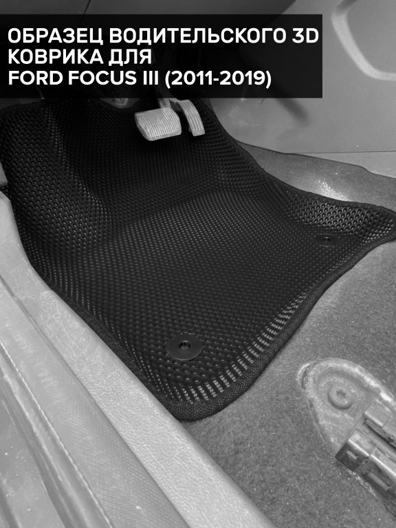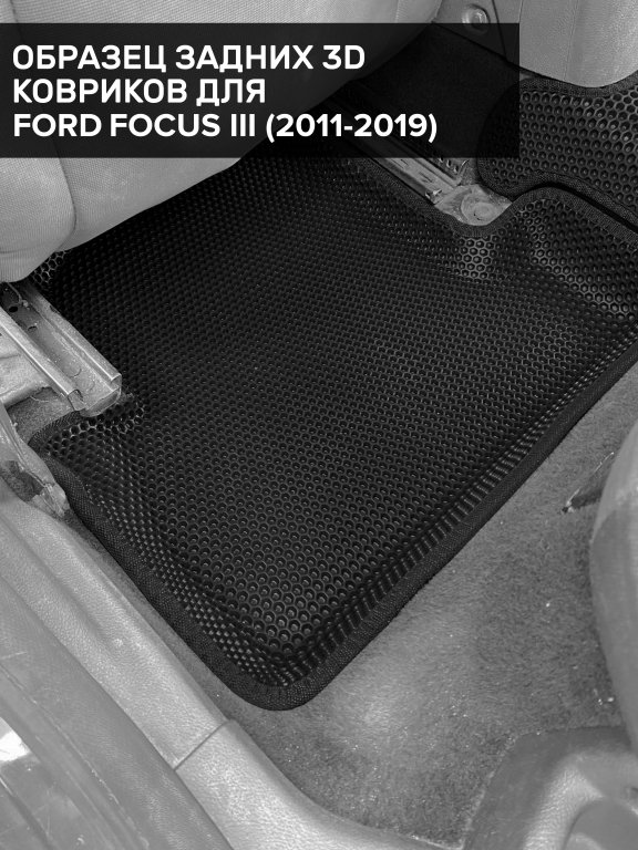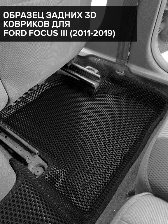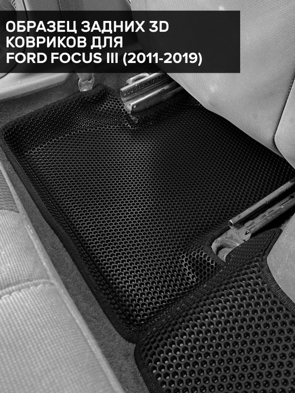 Автомобильные 3д коврики для Ford Focus III рестайлинг седан, хэтчбек, универсал (2014-2019) в салон авто и багажник сделаны из инновационного полимерного материала EVA, изысканная структура в виде ячеек не дает воде, пыли и снегу разлетаться по салону машины и багажнику. 3д коврики зафиксированы на полу определенными клипсами, соответствующими Ford Focus III рестайлинг седан, хэтчбек, универсал (2014-2019), и не двигаются в процессе езды.