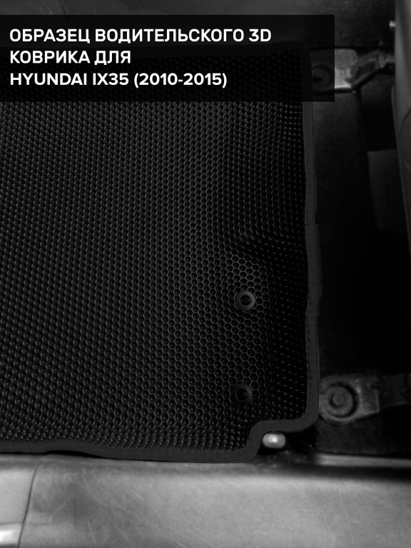Автомобильные 3д коврики для Hyundai ix35 (2010-2015) в салон авто и багажник сделаны из инновационного полимерного материала EVA, изысканная структура в виде ячеек не дает воде, пыли и снегу разлетаться по салону машины и багажнику. 3д коврики зафиксированы на полу определенными клипсами, соответствующими Hyundai ix35 (2010-2015), и не двигаются в процессе езды.