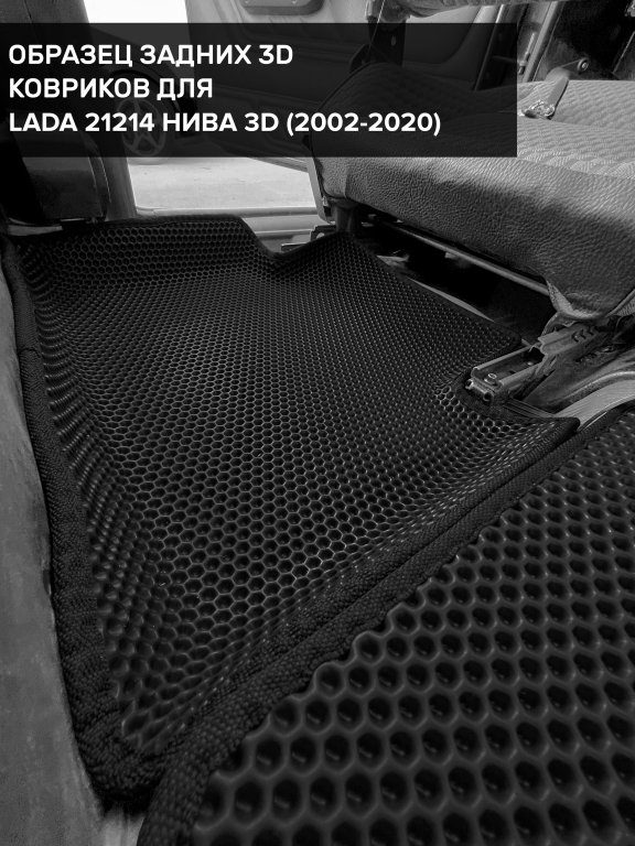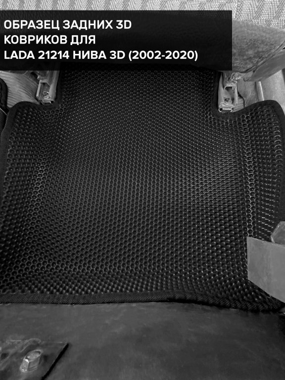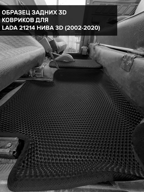 Автомобильные 3д коврики для Lada Нива 3-х дверная (1977-2020) в салон авто и багажник сделаны из инновационного полимерного материала EVA, изысканная структура в виде ячеек не дает воде, пыли и снегу разлетаться по салону машины и багажнику. 3д коврики зафиксированы на полу определенными клипсами, соответствующими Lada Нива 3-х дверная (1977-2020), и не двигаются в процессе езды.