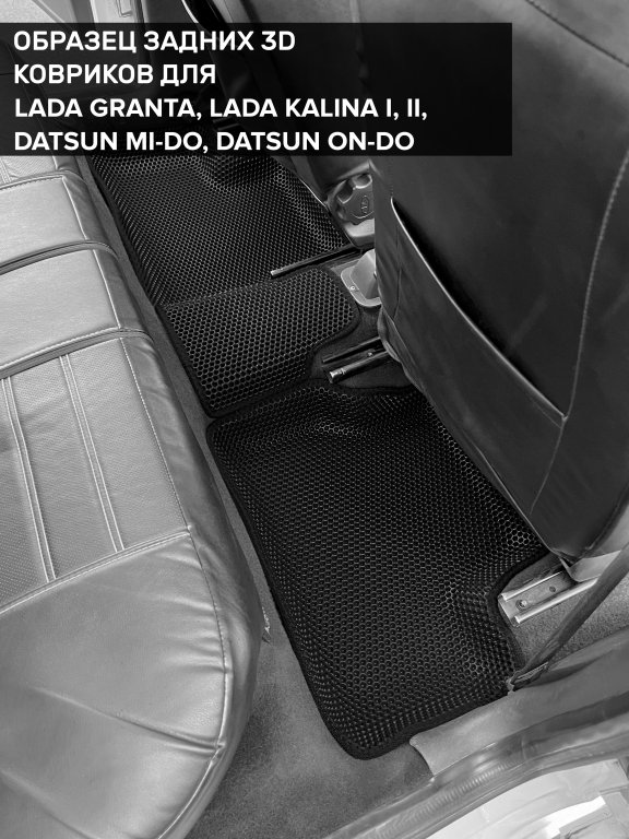 Автомобильные 3д коврики для Lada Kalina I седан, хэтчбек, универсал (2004-2013) в салон авто и багажник сделаны из инновационного полимерного материала EVA, изысканная структура в виде ячеек не дает воде, пыли и снегу разлетаться по салону машины и багажнику. 3д коврики зафиксированы на полу определенными клипсами, соответствующими Lada Kalina I седан, хэтчбек, универсал (2004-2013), и не двигаются в процессе езды.