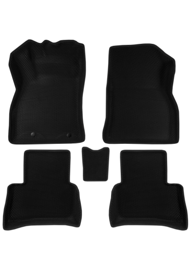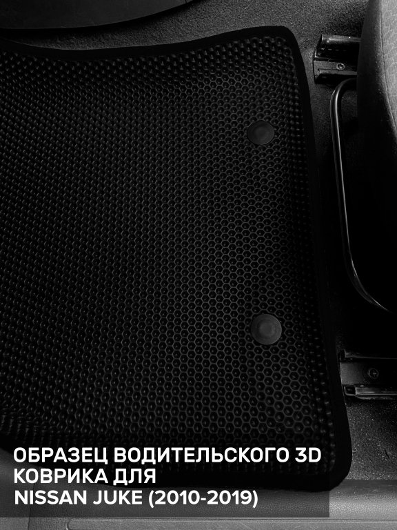 Автомобильные 3д коврики для Nissan Juke (2010-2019) в салон авто и багажник сделаны из инновационного полимерного материала EVA, изысканная структура в виде ячеек не дает воде, пыли и снегу разлетаться по салону машины и багажнику. 3д коврики зафиксированы на полу определенными клипсами, соответствующими Nissan Juke (2010-2019), и не двигаются в процессе езды.