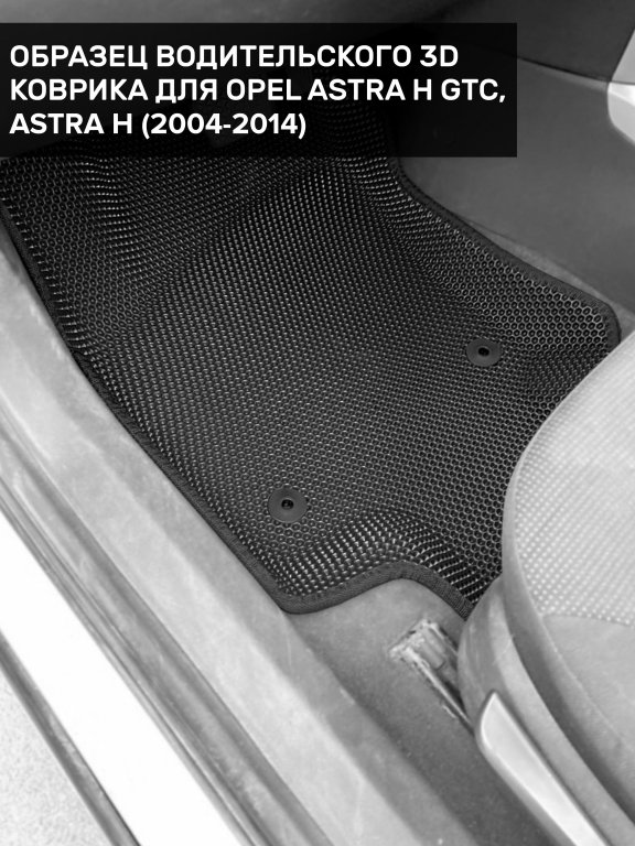 Автомобильные 3д коврики для Opel Astra H хетчбек, универсал (2004-2014) в салон авто и багажник сделаны из инновационного полимерного материала EVA, изысканная структура в виде ячеек не дает воде, пыли и снегу разлетаться по салону машины и багажнику. 3д коврики зафиксированы на полу определенными клипсами, соответствующими Opel Astra H хетчбек, универсал (2004-2014), и не двигаются в процессе езды.