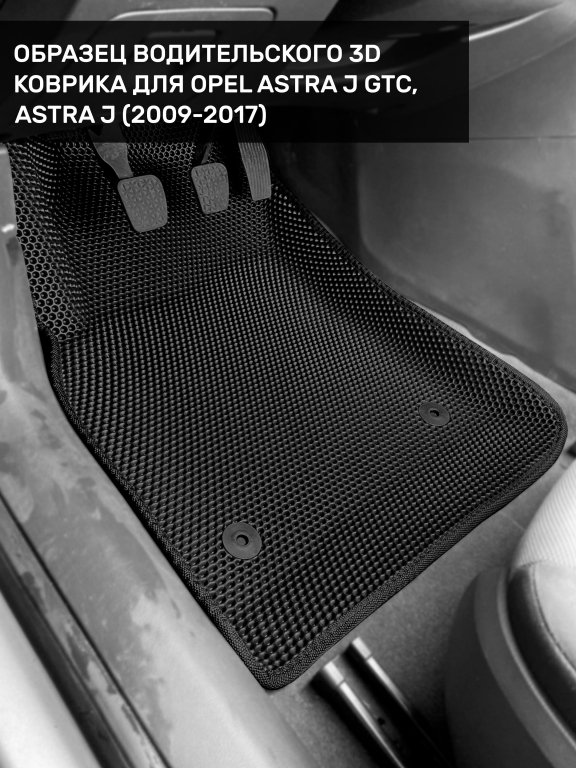 Автомобильные 3д коврики для Opel Astra J седан, хэтчбек, универсал (2009-2018) в салон авто и багажник сделаны из инновационного полимерного материала EVA, изысканная структура в виде ячеек не дает воде, пыли и снегу разлетаться по салону машины и багажнику. 3д коврики зафиксированы на полу определенными клипсами, соответствующими Opel Astra J седан, хэтчбек, универсал (2009-2018), и не двигаются в процессе езды.
