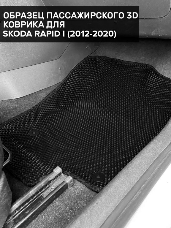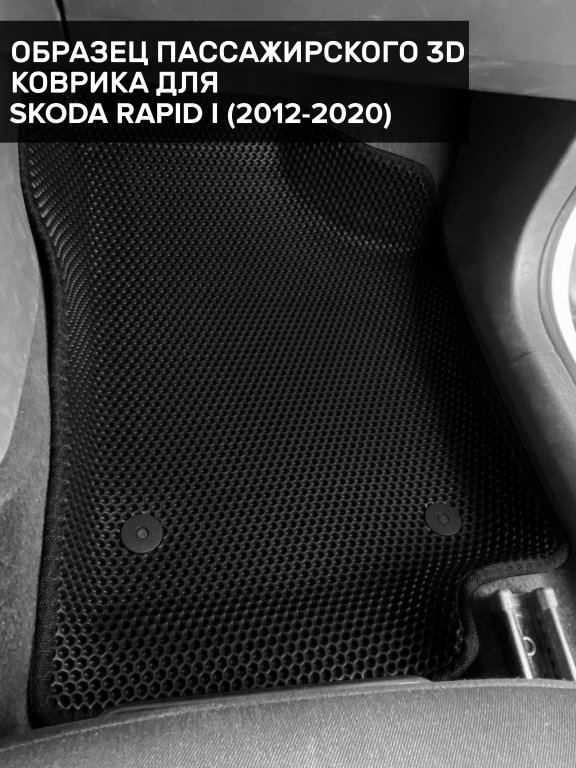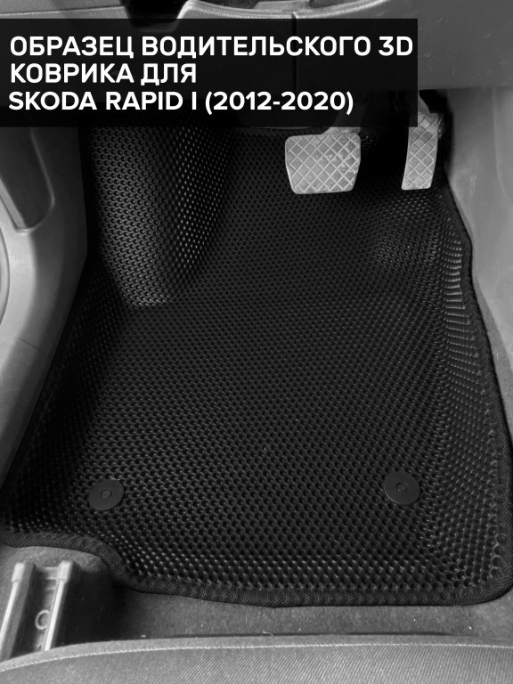 Автомобильные 3д коврики для Skoda Rapid I (2012-2020) в салон авто и багажник сделаны из инновационного полимерного материала EVA, изысканная структура в виде ячеек не дает воде, пыли и снегу разлетаться по салону машины и багажнику. 3д коврики зафиксированы на полу определенными клипсами, соответствующими Skoda Rapid I (2012-2020), и не двигаются в процессе езды.