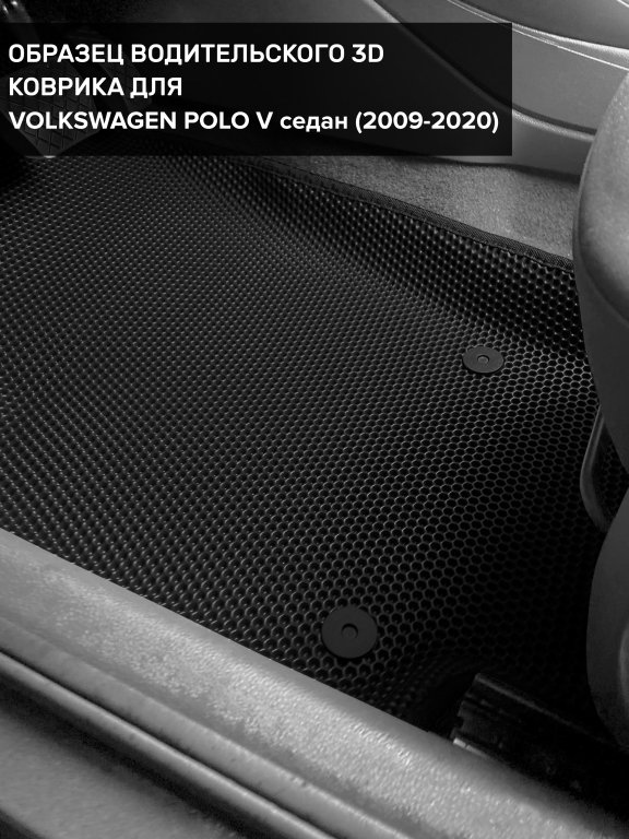 Автомобильные 3д коврики для Volkswagen Polo V седан (2009-2020) в салон авто и багажник сделаны из инновационного полимерного материала EVA, изысканная структура в виде ячеек не дает воде, пыли и снегу разлетаться по салону машины и багажнику. 3д коврики зафиксированы на полу определенными клипсами, соответствующими Volkswagen Polo V седан (2009-2020), и не двигаются в процессе езды.